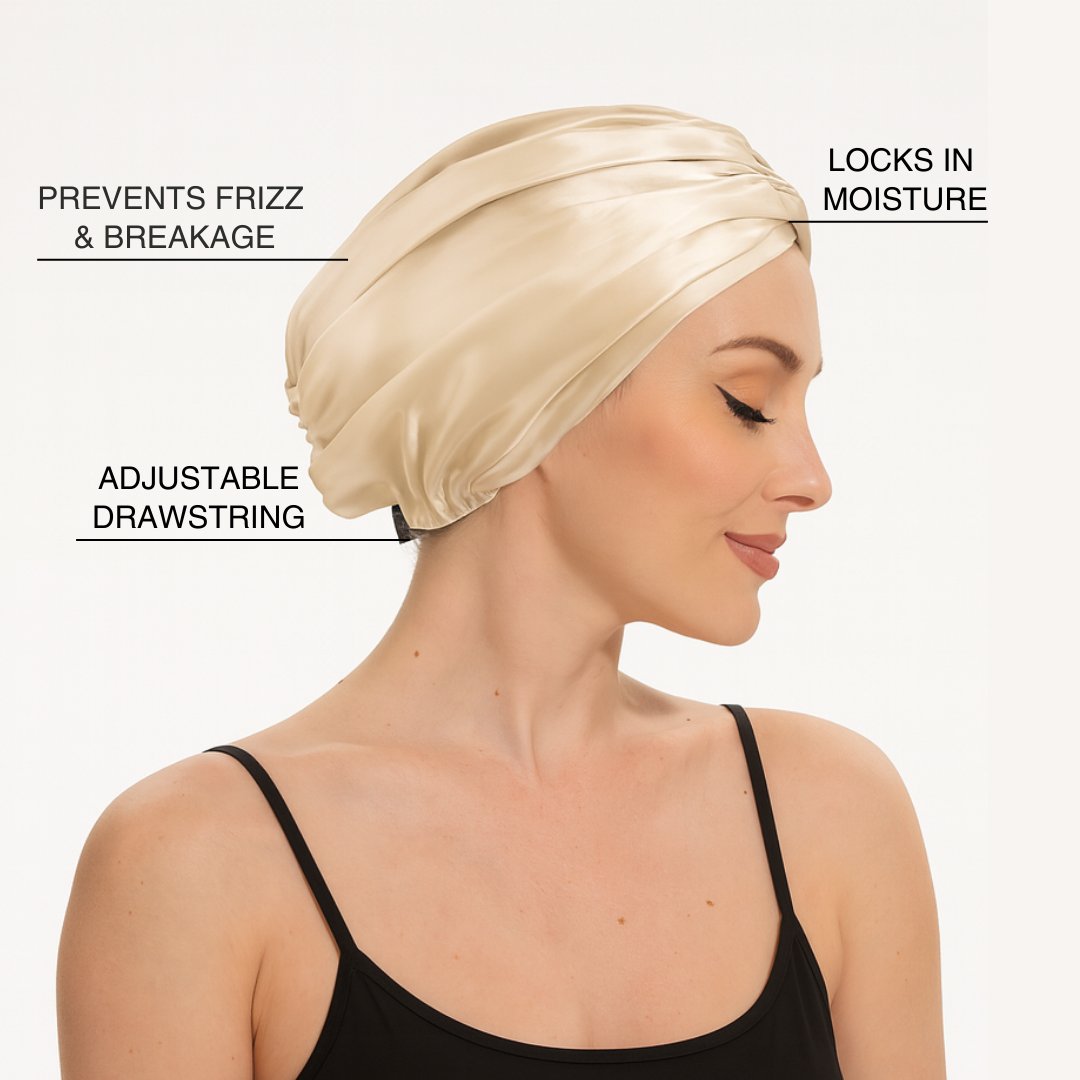 The Cure Bonnet turns your nighttime routine into a true hair ritual. Crafted from smooth, breathable satin with a customisable fit, it helps protect delicate strands from friction, locks in the nourishing benefits of your oil treatments, and preserves your style while you rest.