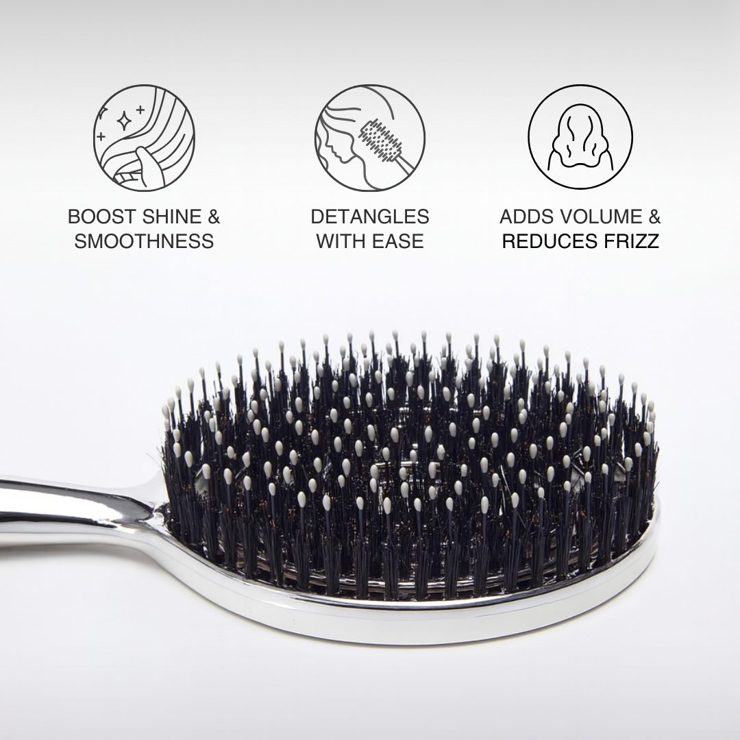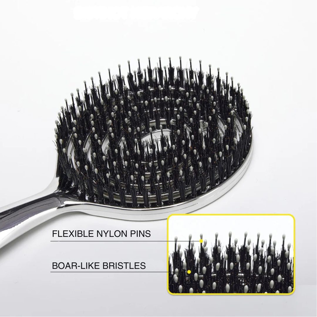 Its soft air-cushion base and mix of professional-grade and boar bristles adapt to your scalp, giving a gentle, circulation-boosting massage as you brush. The result? Sleek, glossy strands with salon-level volume.