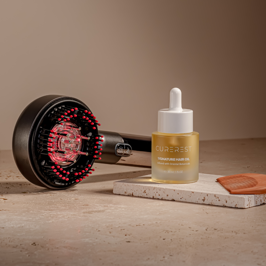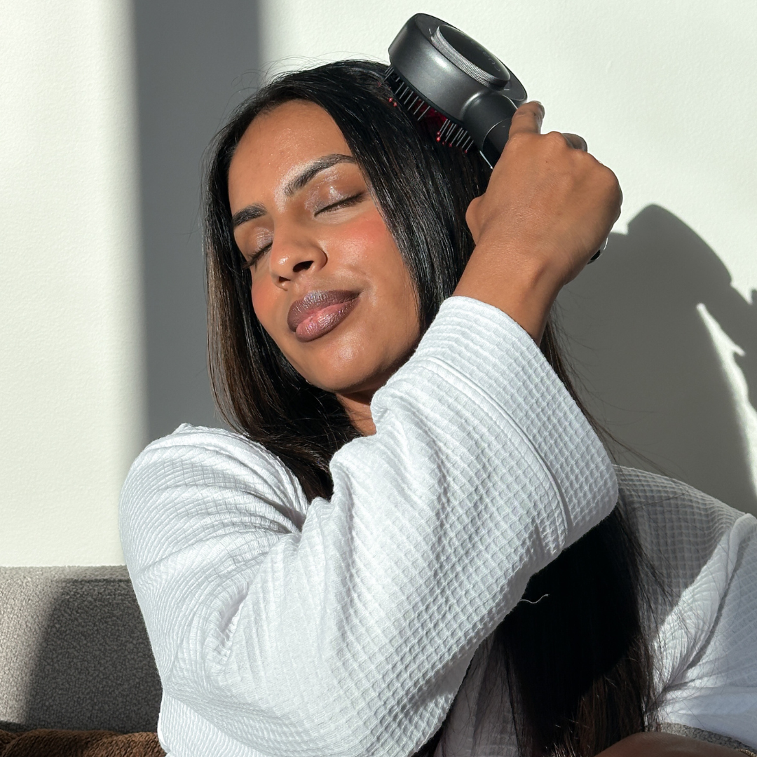 Delivers gentle pulses that stimulate the scalp, loosen buildup, relieve tension, and boost absorption, a soothing, non-invasive way to support stronger, healthier hair.